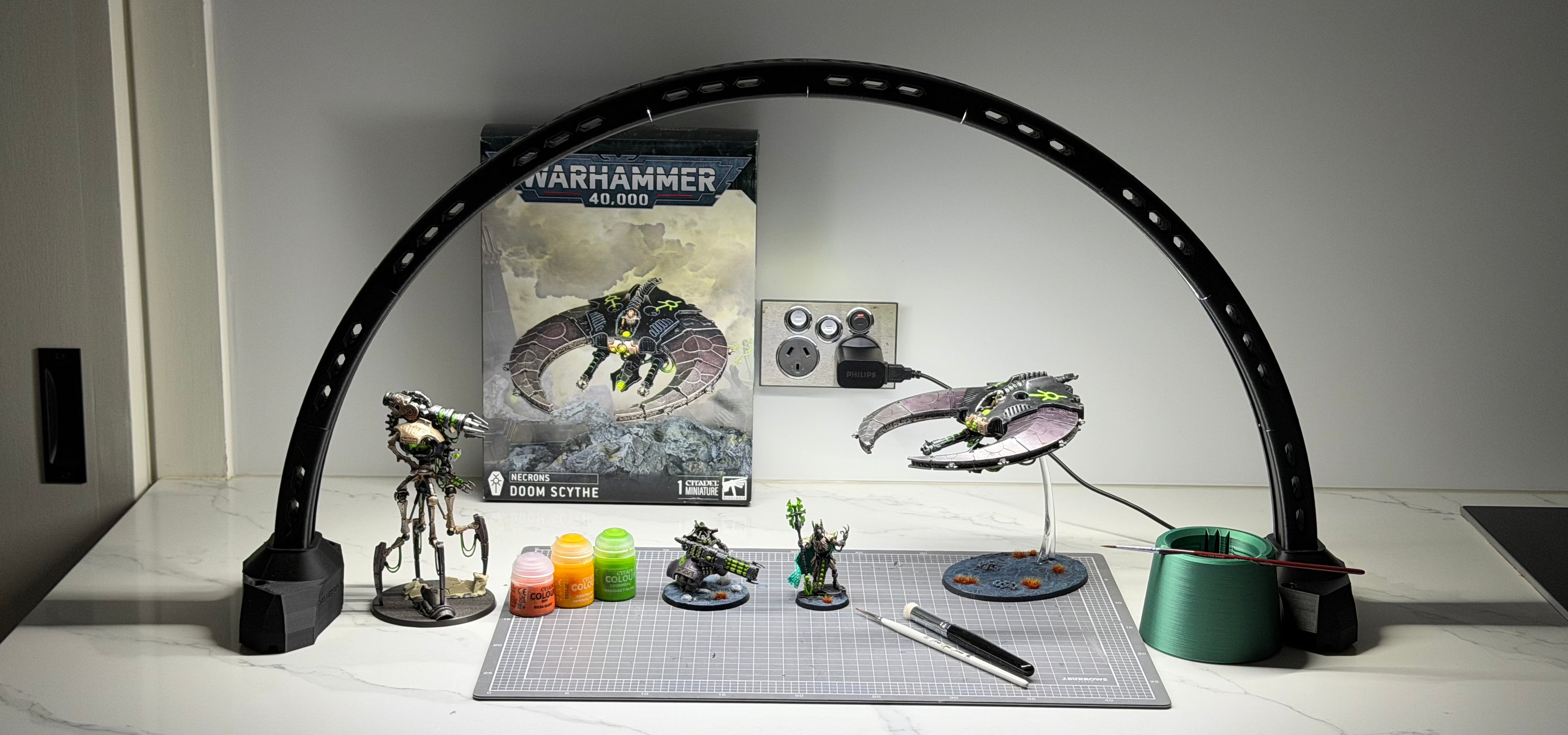 Yes! The Arch LED Light is perfect for hobbyists building models or painting miniatures. Whether you are painting your latest Warhammer 40K army or latest mini masterpiece, its even lighting from multiple angles helps you see small details clearly, ensuring precise results. The adjustable glare guards allow you to control brightness, preventing unwanted glare while you work.